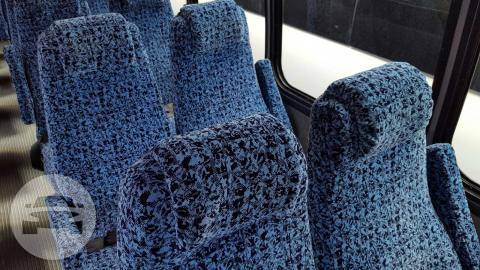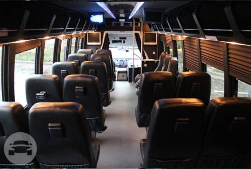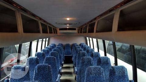33 Passenger coach, with one co pilot seat and space for luggage in the rear. Overhead Passenger Luggage Racks for Carry On Items. High Back Reclining Passenger Seats with Arm Rests. Large Touring Style Windows.