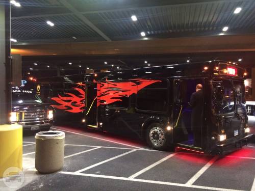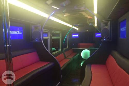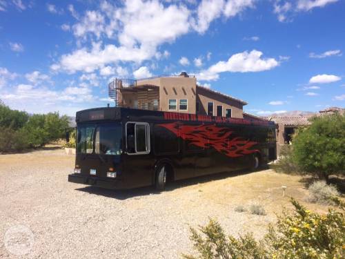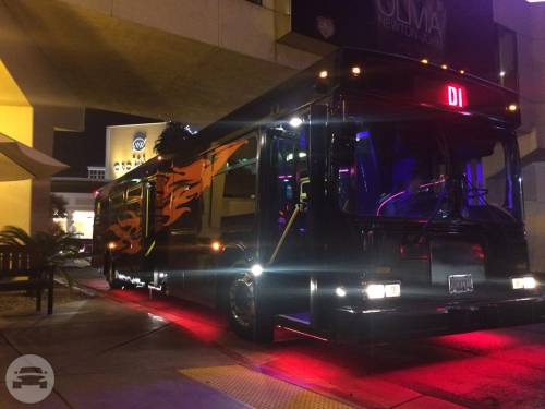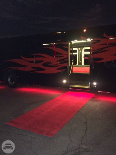 We are very proud to introduce you the Phoenix Disco Bus ! We put all our experience in nights industry and transportation in its conception and conversion. Its design and interior space make it a friendly and secure place for your next event. Your friends and colleagues will be absolutely Wowed by this 39ft long Disco Bus, its incredible sound system and its awesome show lights ! Now let’s fly this Fire Bird over the Las Vegas Strip ! The Phoenix Disco Bus can legally welcome up to 40 passengers The Phoenix Disco Bus is a real XL bus : 39 ft long ! Enjoy a real stand bar... Your drink : with or without ice ? Professional 4000 W Pioneer sound equipment Floor's bus is fully covered with a black and shiny granite Wireless microphone for your speeches and... Karaokes ! For your convenience : six 30" TV's all around you 12 000 multicolored LED controlled by computer Powerful laser and lights shows Use your imagination with our dance pole ; Our smoke machine create a nightclub atmosphere ! Outside destination sign to be personalized with your event