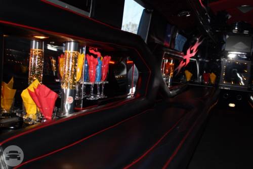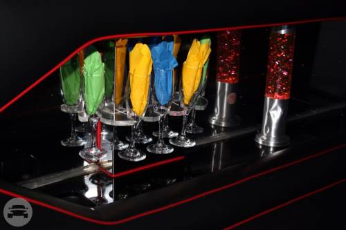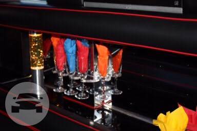 Passenger Capacity: 1-20 Passengers Vehicle Features: Leather seating, Full-length stainless steel ceiling with fiber optics embedded, a level III stereo system, AM/FM CD/DVD Player with TV Tune, IPOD Ready Hookups (in most of our limousines), flat screen televisions, Privacy Window/ Tinted Windows, Dual Air Conditioner, red laser light show, strobe light and fiber optics throughout, bar area with stainless steel backs, ice buckets and champagne holders, Full wet bar.
