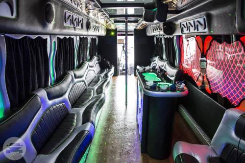 All the elegance of a traditional limousine with a spacious wide body, maple headroom, bluetooth / auxiliary, DVD, CD player with radio, Neon Lighting, and a Beverage Console Bar. Custom designed for shuttle or charter services, the Limo Bus is made to satisfy your special occasion. From corporate outings to Sporting Events, this one is the Absolute Luxury. The Limo Bus provides a capacity to fill up to 25 passengers.
