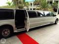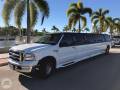 Huge stretch SUV Limo Ford Excursion stretch SUV for up to 14 passengers Our white Ford Excursion super stretch SUV Limo seats comfortable up to 14 passengers. It comes equipped with fiber optics, upgraded Entertainment System (CD, iPod, MP3, DVD, TFT screens) and a full beverage bar. The huge privacy partition and the separate climatic control increase the comfort factor and let you feel like a superstar. A clever and fun choice for any leisure event including, • Bachelor and Bachelorette Party's • Sporting events • Weddings • Prom and Homecoming The Limotions Team is proud offering you this huge Ford Excursion stretch SUV Limousine Facts about our Ford Excursion Limo - fits comfortable up to 14 passengers or, up to 10 passengers + 8 pieces of luggage + 6 mid size luggage - on board 110v power supply - huge privacy separation with a beverage bar - perfect for any occasion and event transportation Huge stretch SUV deluxe The stretch Ford Excursion suites perfect for any celebration and leisure affair. The giant privacy partition with the beverage bar offers enough space for up to 14 people. It's the perfect sensation to impress your friends and everybody seeing you. You will definitely attract the attention.