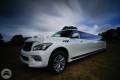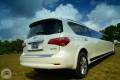 18 Passenger Capacity 20″ Wheels Privacy Partition Multiple LCD Screens Custom Kenwood Sound System iPod/Andriod/USB connectivity Complimentary Soft Drinks Two tone leather seating Sleek single window design Multi Color Disco Ceiling Interior Strobe lighting & Multi-point Laser Dual Bars with LED Lighting Dual Laser Machines Color Changing LED Lighting Crystal Stemware & Rock glasses Touch Screen Controls We are proud to introduce our newest addition to our impressive fleet of NJ Limousines, our brand new Infiniti QX-80 stretch limo. This gorgeous limousine has all the amenities of a NYC VIP lounge. If you need to attend a NJ or NYC Prom night, a NYC Bachelor party, New Jersey Bachelorette party, or simply just having a night out on the town and you need to do it in style then look no further. Once again we have spared no expense in making this one of a kind custom limousine fully loaded with all the amenities you have come to expect from a Santos VIP Limo in NJ. We started with one of the hottest trucks on the market and designed with our coach builder a one of a kind interior. On the exterior we went with our signature sleek single window design and Intelligent LED opera lights. In keeping with our NYC Club style motif we adorned the interior in exquisite imported leather and introduced a new material which replicates a carbon fiber look. As with all our recent builds we have also installed a fiber optic intelligent lighting system in the ceiling and a hardwood charcoal colored floor. The dual bars have tiered white marbled bar tops with stainless steel ice chests, crystal champagne flutes and glassware as well as color changing mood lighting built into the bar. To finish this specatcular interior, we installed a custom Kenwood sound and video system that is simply incredible. With a ride like this we are sure you and your guest will get the party started long before you have reached your destination! Call us today to reserve this one of kind limousine!