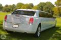 10 passenger capacity Sleek single window design Interior laser light show Sony™ Xplod sound system AM/FM/MP3/CD Player DVD Player with 3 LCD TV’s Complimentary soft drinks Glossy white exterior Crystal stemware & rock glasses Color changing exterior LED lighting Multi-color fiber lighting Interior and exterior strobe lighting Stainless Steel bar w/ built in coolers Custom two-tone leather seating Disco LED lighted ceiling Personable chauffeurs Santos VIP Limousine has always been on the cutting edge of the industry by offering some of the most sought after luxury limousines available. Our new sleek and sexy Chrysler 300 Super Stretch limo is no exception. This gorgeous stretch limo can seat up to 10 guests, has a “Glossy White” exterior, custom two-tone interior, custom bar with stainless steel accents, LED disco lighting in the ceiling, multi-color fiber lights, a state of the art sound and video system with multiple flat screens and DVD player. Only Santos VIP can bring you a limousine of this caliber, call us today and arrive at your next event in style! The Chrysler 300 Stretch Limousine is perfect for Weddings, Proms, Nights on the Town or any other special event in NJ, South Jersey, NY, Philadelphia or Eastern Pennsylvania.