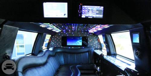 The 14 pasenger SUV limo can comfortably fit 14 passengers and has the features that our clients have come to expect from our exclusive limos. The custom interior is adorned in soft black leather. The ceiling was custom designed with color changing LED disco lights and graphics. This limousine features deep ice chests, an incredible top-of-the-line interactive high-powered sound system, multiple flat screen LCD screens, CD/DVD player w/Bluetooth connectivity, and Laser and strobe lighting. You can rest assured that you and your guests will be partying long before you reach your destination!