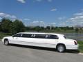 12 Passenger 180″ Lincoln Town Car Limousine All white “Tuxedo style” 12 passenger Lincoln Town Car Limousine with a cloth black top available for rent in Merrillville, IN. This vehicle is equipped with 3 flat screen monitors, dvd player, cd player, and it is iPod / mp3 player ready. This limousine has 4 large built in coolers, mirrored ceiling, and neon color changing lights. This limousine is perfect for weddings, proms, and concerts in Northwest, Indiana.