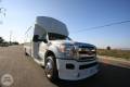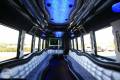 This white Chevrolet Mini Shuttle Bus holds 24-29 people and features: TV with DVD Player, Radio Luggage Space Reclining Seats