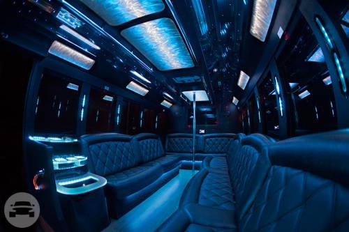 Coach 2 boasts a high-tech smart touch system. This means that the client has total control over the environment inside the limo coach bus. There’s an auxiliary/USB cord that lets you play music from your phone or iPod. You’ll love hearing your favorite tunes through our fantastic sound system. The interior also has hardwood floors and seats made of leather, giving passengers the ultimate in comfort. There’s even a LED light show, just like what you’d find at the hottest clubs! As many as 18 people can fit inside this bus. Features 18 Passengers 2 TVs 1 Large Bar Area iPod / CD / DVD / MP3 LED Light Show Rockford Fosgate Sound