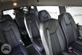 This vehicle is a black Lincoln Navigator SUV with seating and luggage space for 6 passengers. It has black leather captain’s chairs and a rear leather bench.