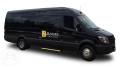 This luxurious Mercedes-Benz Sprinter Van has individual two-tone leather seats, overhead luggage storage, stadium seating, television, and individual power sources for charging electronics. An elegant solution for group and executive outings.