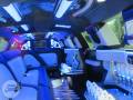 Perimeter seating Wood Floors Chrome Ceiling Two 50 inch smart televisions Fiber optic and RGB lighting High end surround sound system Ipod hookup Removable pole Chrome wheels