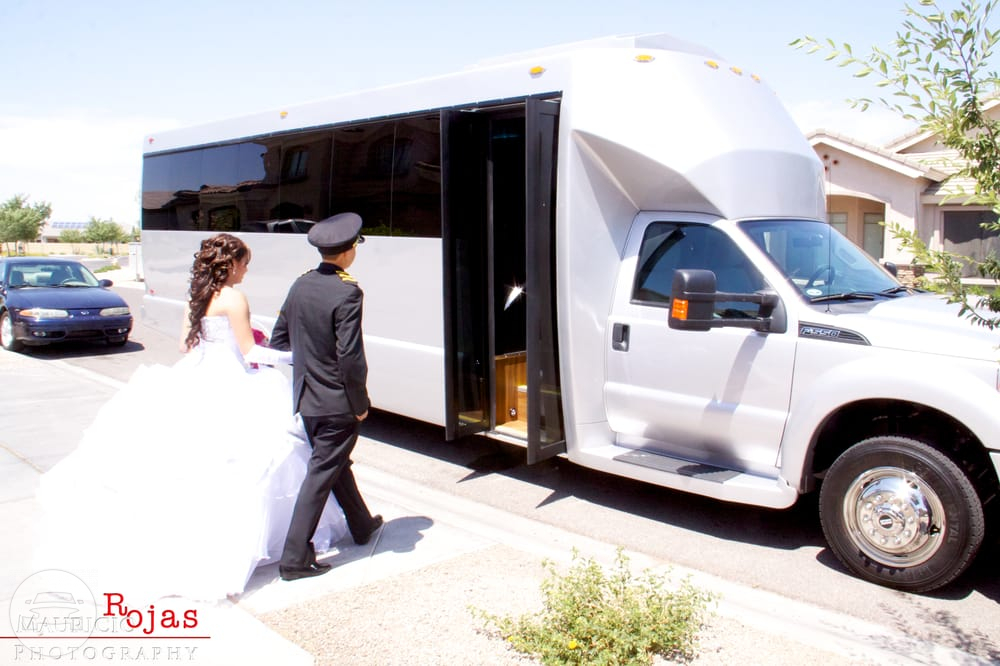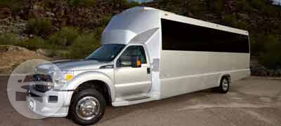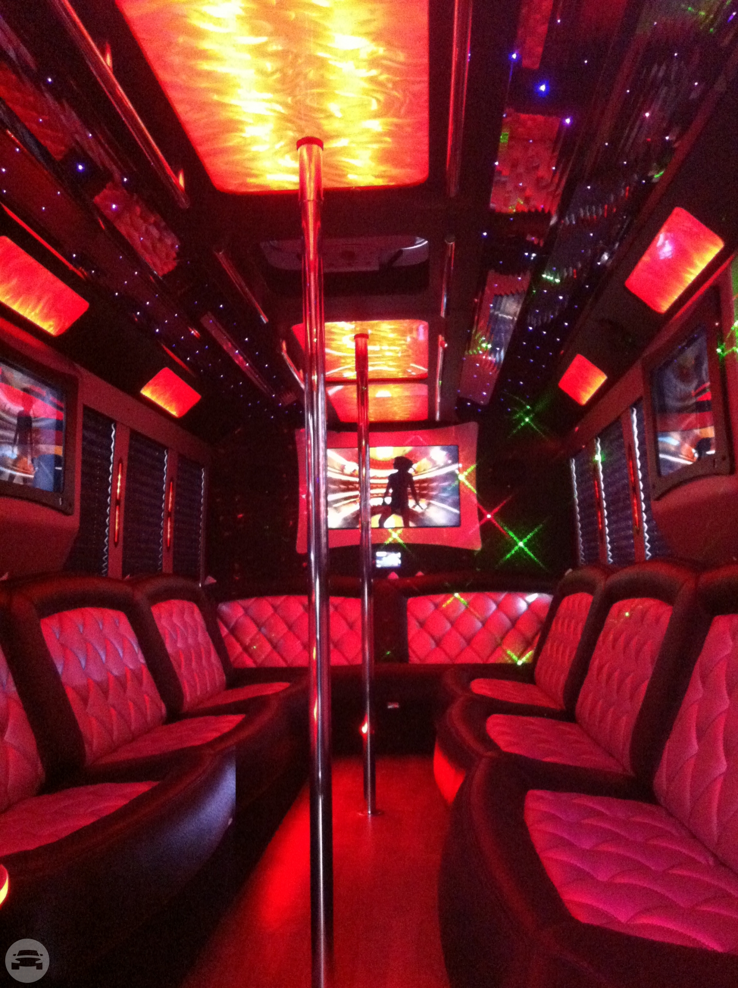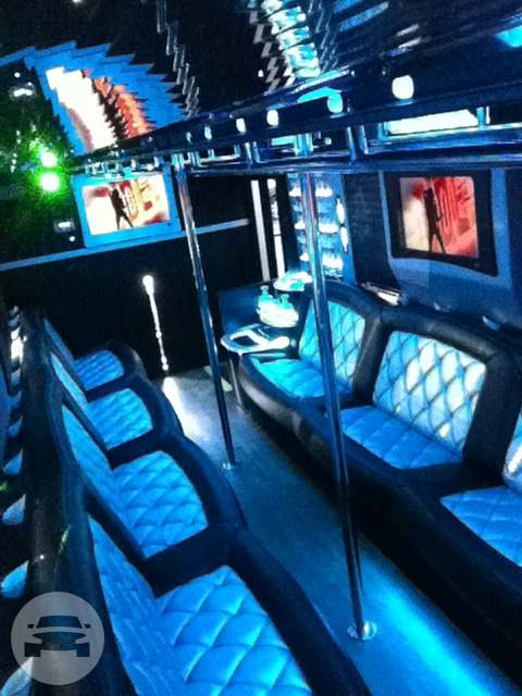 Our White Party Bus is completely decked out with the finest luxury amenities available like premium leather seating, fully stocked bar and HDTVs, a large dance floor and a dancing pole! This luxurious party bus will feel more like your favorite nightclub than your transport. You and your friends will be dancing your way through the night as you ride through town in style! AMENITIES Seats 12-14 Passengers Comfortably Leather Seats & Privacy Divider HDTV & DVD Player iPod & MP3 Music Multicolor Fiber Optic Lighting Crystal Glasses Complimentary Red Carpet Service Upon Request