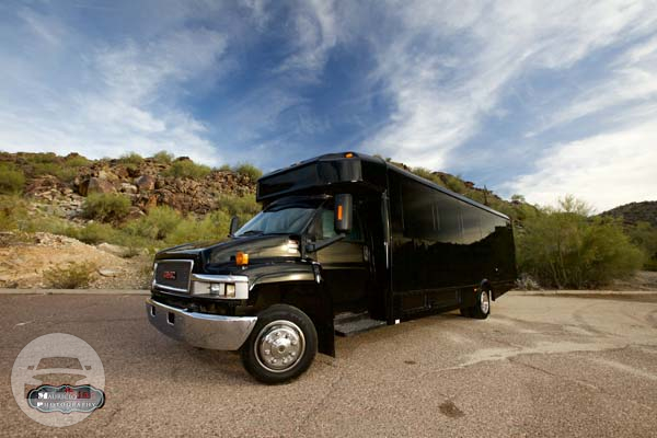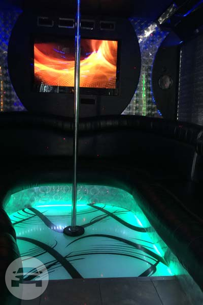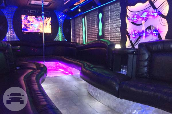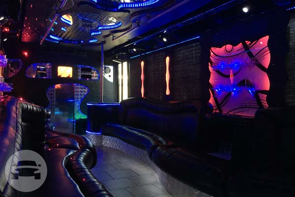 The twenty five passenger party bus has everything you need to make your night special. This limo bus has an upgraded sound system, a large flat panel TV, fiber optic lighting and mood control, and several bars with complimentary refreshments.