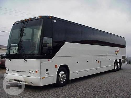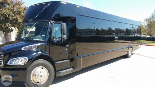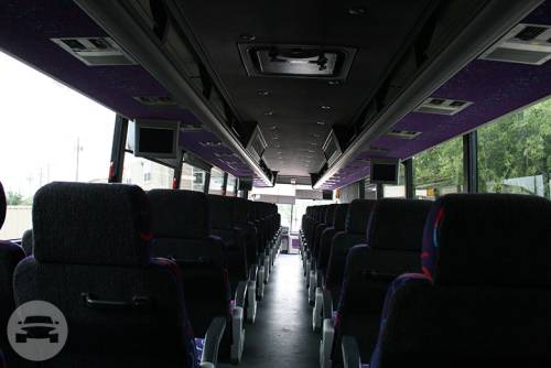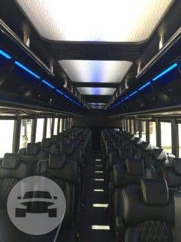 Passengers: 50 Luggage Capacity: 50 Vehicle Color: Black This 50 Passenger executive coach limo bus is incredible. Beautiful hand-crafted diamond double stitch captain seats, amazing corporate lighting ceiling, hardwood floors, overhead storage/luggage compartment, front tv/dvd/ipod connection, flip down televisions, headrests, 3 point harness for each individual rider, arm rests, charging ports and so much more! If you are going to travel long haul, might as well travel in style! Forward Facing Seating Armrests Cup Holders Hardwood Floors Courtesy Lighting AM/FM/CD/DVD/MP3 Entertainment System Overhead Luggage Storage Leather Seating