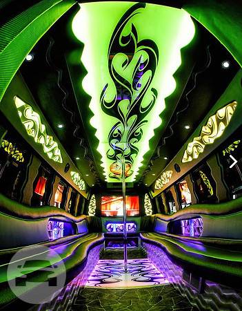 Number of Passenger: 1 up to 36-40 Fully Loaded. Have a large group for your Chicago Prom or Chicago Wedding, and you don't want to settle for a Coach Bus? Seeking Elegance and Luxury in massive size? This is the ULTIMATE Chicago party Bus and it can seat up to 40 passengers! There are 2 (removeable) super duty stripper poles and 3 Flat Screen TVs. Features beautiful hardwood flooring for you and your guests to dance on and to also portray the elegance your event deserves. There are two beautifully lit disco floors. The ceiling is backlit to create the perfect atmosphere along with laser light shows and LED color-changing lights throughout. If you want privacy, no problem! There are shades you can pull down to dim the interior of the bus and offer privacy for you and all your guests. Hook your phone or music player up to our Touch Screen sound system and control the music to play your favorite songs. Mad Max Party Bus Chicago is perfect for any Chicago Wedding, Chicago Prom, Quinceanera, Concert, Chicago Night Out, Bachelor/Bachelorette Party, Bridal Showers, and more! Our Limo Buses features: Those party Buses are fully loaded and holds a capacity of 30 Passengers(Less if you like PLENTY OF SPACE), 5 Very Big Bars with cocktail & champagne glasses, champagne holders, 40-60'' Plasmas.....