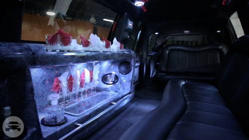 Up to 9 Passengers 2015 or Newer Options of Black or White Vehicle AM/FM/CD/DVD/TVs Bluetooth Compatible Sound System Fiber Optic Mood Lighting Service Bar with Insulated Coolers Alcoholic Beverages (Upon Request) Glassware (Upon Request) Complementary Ice and Bottled Water Complimentary Bottled Water
