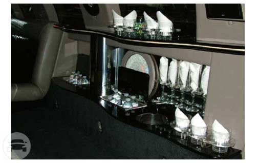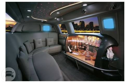 Capacity: 8 passenger Luggage: 6 The Lincoln Stretch Limousine seats 8-10 passengers, white exterior, leather interior, tinted windows, bar area (glassware/bottled water/ice chest) AM/FM stereo, CD player, I-Pod connection, 2 flat panel screens with DVD player, fibre optic lighting package, mirrored ceiling.
