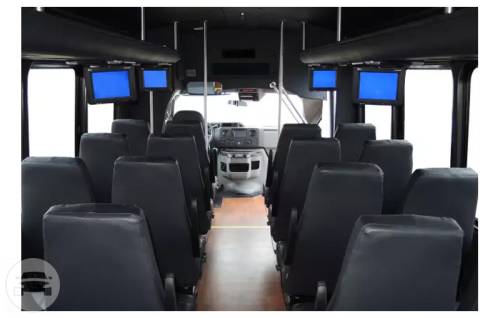 Our 24-passenger shuttle bus features comfortably-spaced seating, GPS, television monitor, and a CD/DVD player with a PA system. A great choice for school events, corporate transportation, or any other event where a van isn’t quite large enough. 23″ plasma screen television CD/DVD/AM/FM stereo with PA system American high back reclining cloth fabric seats Arm rests Hand rails for easy boarding Rear baggage area