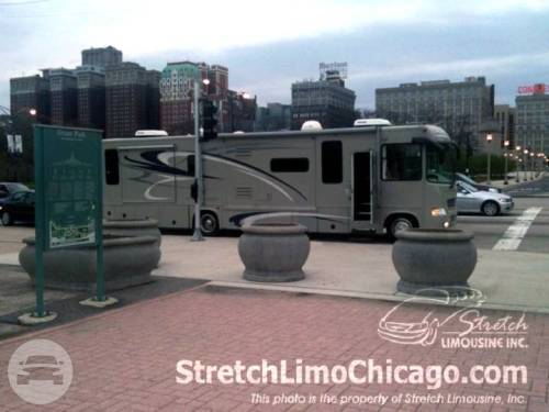 36-passenger Freightliner Limo Party Bus with bathroom. There are a lot of different ways to get around Chicago on a Saturday night. You can always drive yourself, catch a cab, or depending on a weather- walk… But what if you want to make the night really special, what if you do not want to drive or take a cab? Well, you can always rent a huge Freightliner Limo Party Bus! Scroll down to the bottom of this page to check our rates of this collosal party bus.Welcome to Stretch Limousine's 36-passenger Freightliner limo party bus page filled with with lots of actual photos and rates. This is the biggest party bus in Chicago that can comfortably hold comfortably 34, 35, or even up to 36 adult passengers. This huge Freightliner limo bus is equipped with two flat screen TVs, 32 and 42-inch with over-the-air TV programming, plus it has an onboard lavatory* perfect for tailgating parties. This new 36-seater limousine bus is a recent addition to our huge fleet of limo party buses including one-of-a-kind RV Chicago party bus for the best party in town.