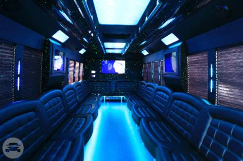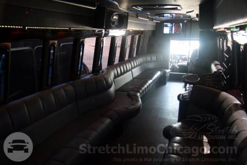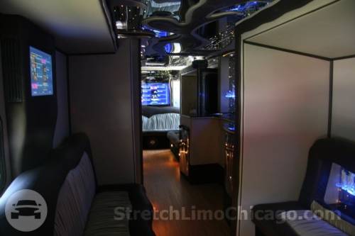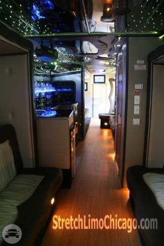 26-passenger, one-of-its-kind, Chicago Party Bus with bathroom. Stretch Limousine Inc specializes in providing our clients with prompt, luxurious and hassle free transportation for events ranging from birthdays, weddings, bachelor/bachelorette parties to concerts and sporting events in our 26 passenger Chicago party bus. Fiber optic lights, dancing pole (can be a strip pole), disco lights, 50-inch LCD, 5x smaller LCD sreens, DVD, CD Player, Bathroom, Blinds, 12 Stobe Light, karaoke machine per request, 16 6x9" Speakers and 2 16" woofers for THE BEST PARTY BUS IN TOWN!!! One of our specialties is providing a Party Bus service for all sorts of occasions. For your next event, go all out and rent a luxurious Chicago party bus. Our limousine bus is full of amenities such as numerous plasma tv’s, dvd player, fully stocked bar and tons of room- just what you need to make your next party a successful one.