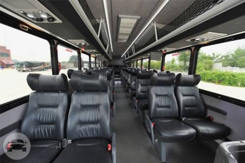 Up to 24 passengers 2014 or newer AM/FM/CD/DVD TV monitors Intercom System Overhead Luggage Compartment Reclining Leather seats Reading Lights Privacy Shades Separate Rear luggage area