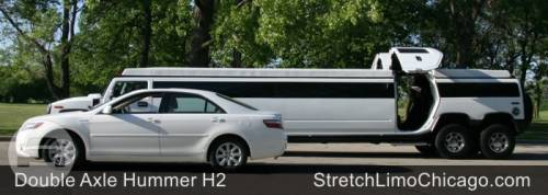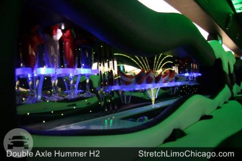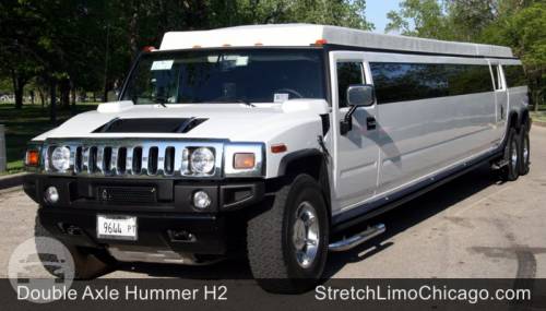 26-passenger Hummer H2 limousine (double-axle Hummer) 26-passenger Hummer H2 double-axle SUV limo Looking for a limo that would overshadow anything else that‘s on the market right now? Stretch Limousine Inc continuously strives to obtain and provide to the public the newest and coolest vehicles. The next time you have a special event, and single axel vehicles are just not enough, try our Chicago Hummer Limo, a double axel party on wheels!!! You and 25 of your friends will really enjoy this newest addition to our fleet, and the “wows” you get will ring in your ears for the next few days. Need a smaller hummer limo? Visit our Chicago hummer limo page for different size hummer limos.