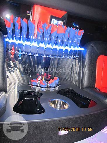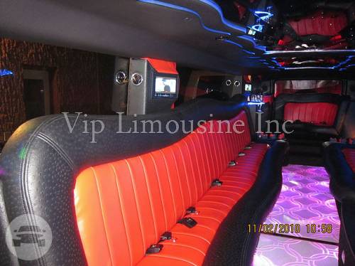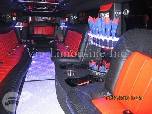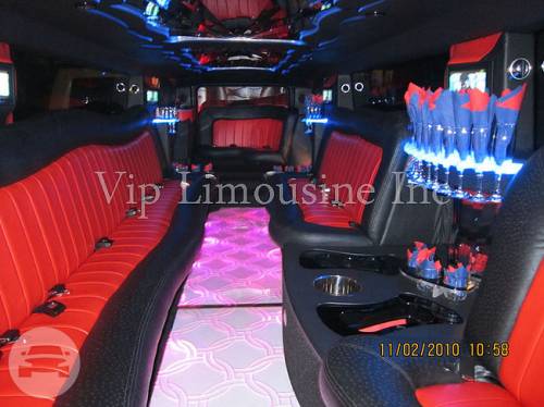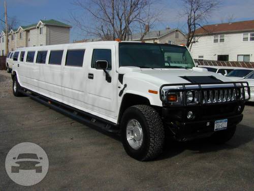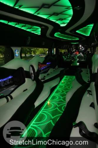 The Hummer Basic Stretch Limousine may be basic, but by no means does it lack the true VIP Chicago Limo experience Inside, the Hummer Stretch is like your own private club for up to 20 people. The sound system featured can’t be beat. The Hummer Super Stretch has bars, so you are never far from a drink as you cruise through the city for a night of fun. Complimentary Water, Soda and cups in every stretch Limousine. This Chicago Hummer Limo is fully loaded with: 2 Very Big Bars, champagne holders, decanters & large ice bins, 4 of 7'' LCD TV, 1 of 15'' plasma TV, VIP lounge in back with a private Plasma TV, DVD player, CD player, I-Pod hook up. State of the art LED and fiber optic light show, Fire Place, Dual green/red laser light show, Strobe lights, State of the art LED disco floor and ceiling with fiber optic light show and stars effect, Full disco light bars. Premium Clarion sound system with 12'' Subwoofer. Privacy Divider, Dual AC compressor for Ice Cold in HOT summers provided by 3 of the industries largest AC units available. Seating capacity: Up to 20 Passengers
