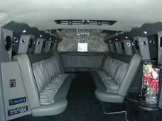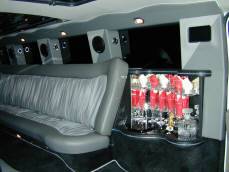 We had hardwood floors installed in this vehicle. (Sorry about the carpets covering the floor. It was raining when I took the interior shots.) It is a $5000 option. Just remember when shopping around - Not all stretch Hummers are alike. This vehicle also has a loveseat, strobe lights, laser lights, flat panel screen tv's, CD, DVD and a 1000 watt stereo to name a few options.