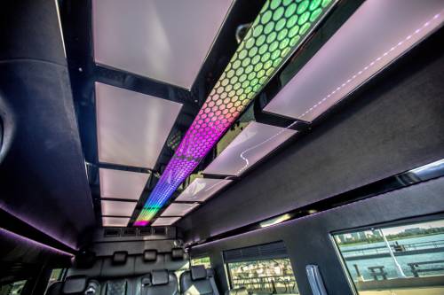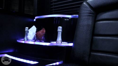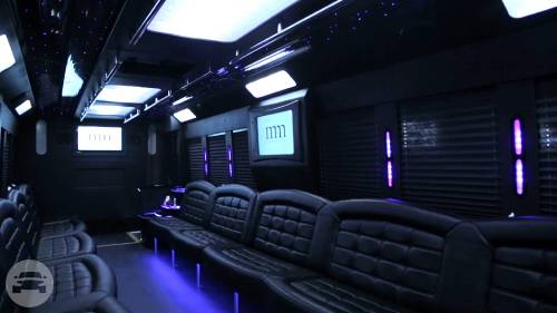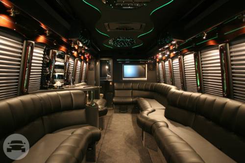 Up to 29 Passengers 2013 or Newer AM/FM/CD/DVD/TVs Bluetooth Compatible 3000 Watt Sound System Fiber Optic Mood Lighting Laser Lights and Strobe Lights Service Bar with Insulated Coolers Alcoholic Beverages (Upon Request) Glassware (Upon Request) Complementary Ice and Bottled Water