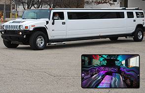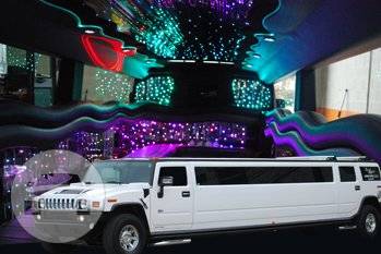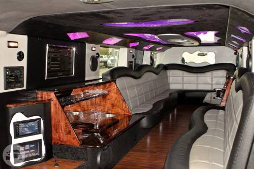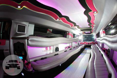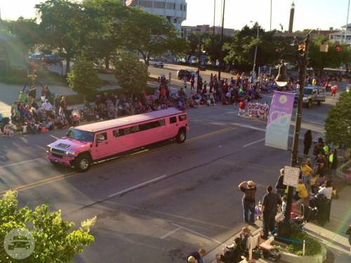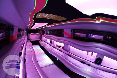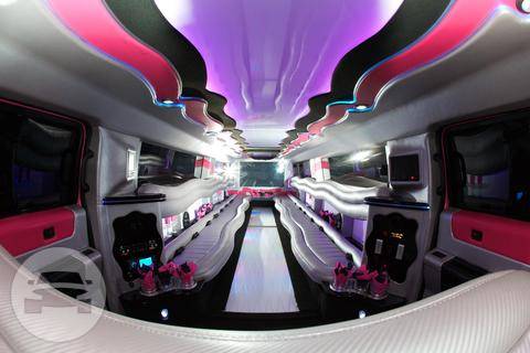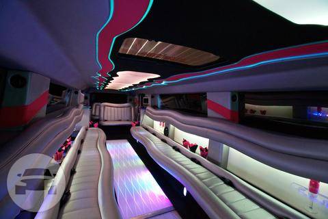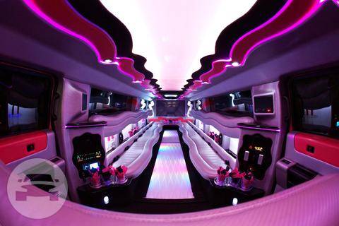 The One-of-a-Kind "PINK PANTHER" Pink H2 Hummerzine complete with Pink Panther theme song played through a custom horn amplifier. Vehicle Amenities: • Up to 20 Passenger Seating Capacity • LED Lit Color Changing Floor • Color Changing LED & Fiber Optic Lighting • CD / DVD Player With AM / FM Radio & Aux Port • (2) 4" & (1) 48" Flat Screen TV's (48" TV acts as privacy partition) • Spectacular Custom Interior & Built in Ice Chests Throughout • Glasses with Decorative Napkins to Match your Occasion