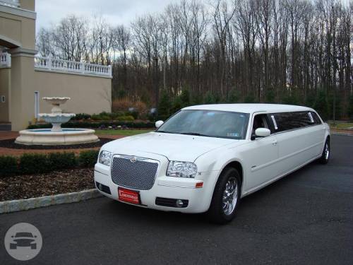 The Chrysler 300 Limousine Seating Capacity: Comfortable 10 passengers and Maximum: 10 passengers. The NJ Chrysler 300 Stretch Limo is a ultra modern and sleek addition to the NJ First Class Limousine fleet. The unique retro design is reminiscent of the much more expensive Rolls Royce. First Class Limousine is proud to offer this new exotic NJ limousine for the price of a traditional Lincoln stretch limo. The Chrysler 300 is the perfect lead wedding vehicle when choosing one of our modern SUV limousines or for when your want to stand out from the crowd. Allow First Class Limousine of New Jersey provide you with first class service on your special NJ-NY Wedding, Special Event or Prom! Ultra Modern Interior, Sleek Single Window Design, Custom 20" Chrome Wheels, Bright White Exterior, LCD TV's, DVD/CD/AM/FM System with Surround Sound, Interior/Exterior Strobe Lighting and Disco LED/Color Changing Ceiling.