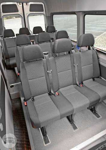The Ford Transit Passenger Van Seating Capacity: Comfortable: 14 passengers and Maximum: 14 passengers. The all new Ford Transit Van is an ultra stylish passenger van available for every event! The Brand New Ford Transit is a Top Notch addition to the First Class Fleet, it features ample seating with plenty of comfort, luggage space and smooth ride. The New Transit Van is a welcomed update to the traditional Ford Passenger Van. Call now to book this beauty for your next airport, Cruise Ship Terminal Transfer or any other type of event! Modern Interior, Rear Luggage, USB Outlets and Seating for 14