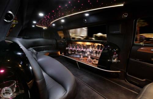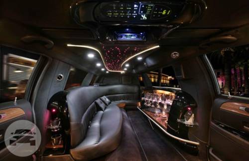 Up to 7 Passengers Limo Tinted Windows Elegant bar setup Luxurious Leather Interior Ice Bins, Glasses & Flutes CD Sound System, TV & DVD Cabin Partition starting $ 70.00