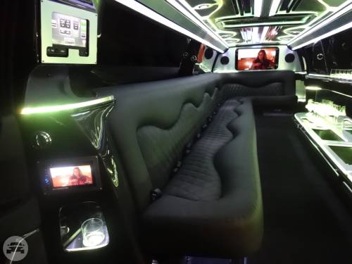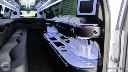 Up to 14 Passengers (2) 15" LCD TVs DVD Player MP3 Connectivity CD Sound System Stobe/fiber optic/neon party effects Limo Tinted Windows Luxurious Leather Interior