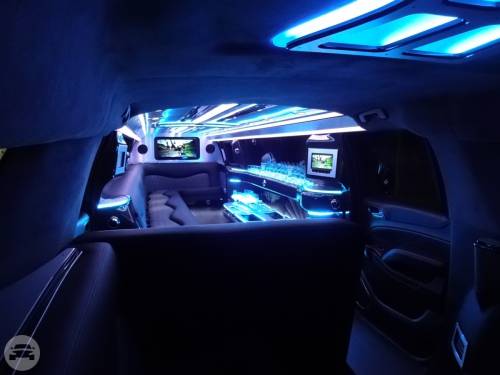 Built by one of the most highly regarded Certified Master Coach builders (CMC) of Cadillac limousines, this DTS is a beautifully elegant option to consider. This car is built to Cadillac specifications, including factory 17” chrome rims, original “White Diamond” pearl white paint, and a strong identifiable emblem. The interior features an exciting and elegant fiber-optic lighting setup in and around the bar and ceiling, the back plate of the bar, and the partition are covered in a mirror/twilight backing that is very romantic. There is a 15” flat screen TV mounted on the partition, a 9”flat screen mounted mid-vehicle on the passenger side, and a 9” T.V. mounted toward the driver side rear of the vehicle. All three flat screens are connected to a DVD player and play through our state-of-the-art, custom made stereo system featuring three 12” kicker” sub-woofers, powered by a 1,000-watt amplifier and a separate 600 watt amplifier for the “Blaupunkt” speakers on the interior. This vehicle looks great, sounds great, and looks terrific in pictures.