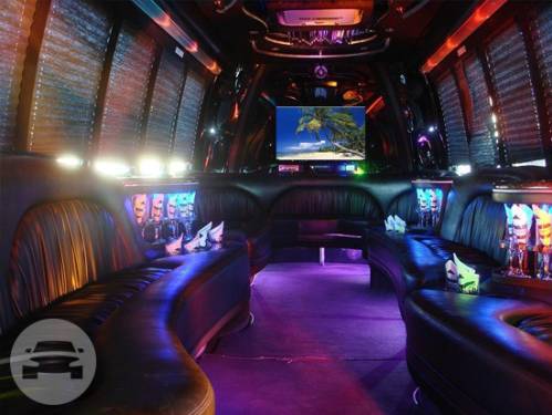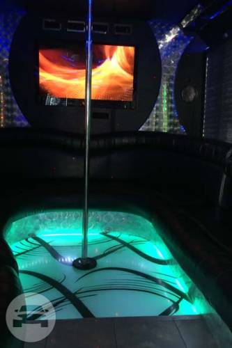 Features: Large Flat screen Tv's front and back, Custom Tiled Flooring, Rear Disco Floor, Leather wrap around seating, LED lighting, Laser lights, Strobes, Dual sub, Surround sound audio system with Bluetooth