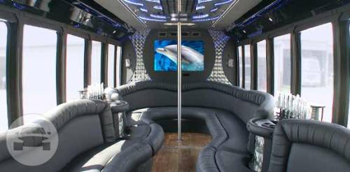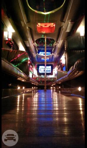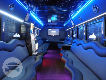 Features Multiple Flat Screen TVs including 50” Plasma, Custom Surround Sound Stereo, CD, DVD, MP3, i-Pod connect, Karaoke, Playstation II, Fully Integrated Touch Screen Controls, Stainless Steel Interior Accents, Strobe Lighting, Laser Lighting, Disco Floor, Fiber Optic Stargazer Ceilings and Crystal Bar