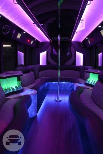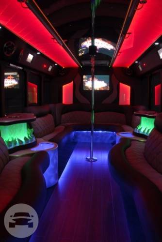 LAS VEGAS LUXURY PARTY BUS 24 PASSENGER LIMO COACH 24 passengers Luggage for 24 White exterior Lounge style seating interior White exterior Illuminated rear controls Fiber-optic lighting 12 Volt power source Fully-uniformed chauffeur Complimentary bottled water