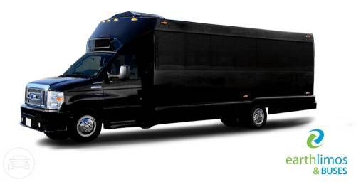 32 passengers Luggage for 32 Black Exterior Lounge style seating interior Illuminated rear controls Fiber-optic lighting Fully-uniformed chauffeur 12 Volt power source Complimentary bottled water