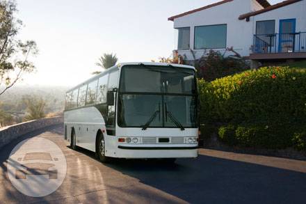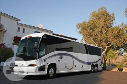 24 passengers Features: LCD TV's DVD CD and IPOD sound access Restrooms Air Ride Suspension Window Shades Luggage Storage