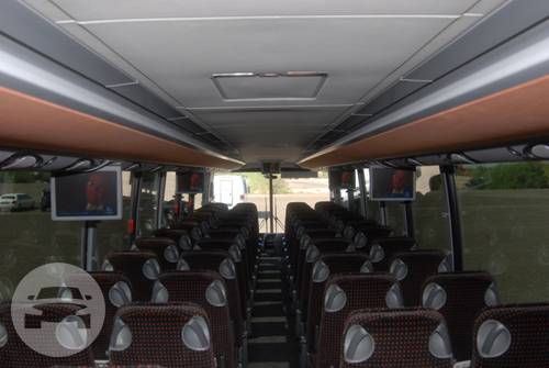 54 passengers Features: LCD TV's DVD CD and IPOD sound access Restrooms Air Ride Suspension Window Shades Luggage Storage