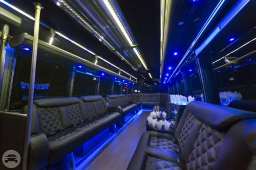 Coach 4 is a luxury bus with the best and latest in entertainment technology. As a client, you’ll be able to use the on-board smart touch system to get just the experience that you want. You can choose what music gets played through the high-tech sound system by connecting your phone or iPod to the auxiliary/USB cord. Club-style LED and fiber optic lights will make the environment even more festive. This limo party bus rental even boasts four big plasma TVs! Lastly, it’s also our biggest model, able to fit 35 passengers. Features 35 Passengers 4 TVs iPod / CD / DVD / MP3 2 Large Bars Fiber Optic Lights LED Lights Rockford Fosgate Sound System