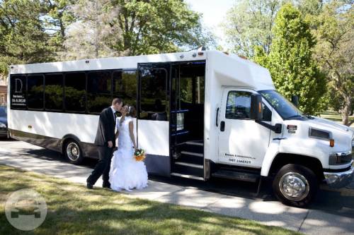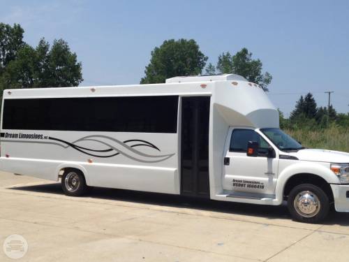 A Coach Limo for 20 Passengers Coach 6 features two tone ostrich leather seating for twenty people! This bus includes a high-tech “Smart Touch” system. This gives passengers control over the temperature, the sound system, the plasma monitors, and the lighting. The bus also has a number of other amenities, such as a lazer light show, mirrored ceilings, and a great bar complete with a cup dispenser and a champagne bucket. Call us today to get a quote on this awesome new addition to the Dream Limos fleet. Features 20 Passengers 2 TVs iPod / CD / DVD / MP3 Large Bar Area LED Lighting Rockford Fosgate Sound
