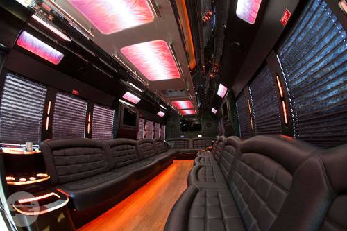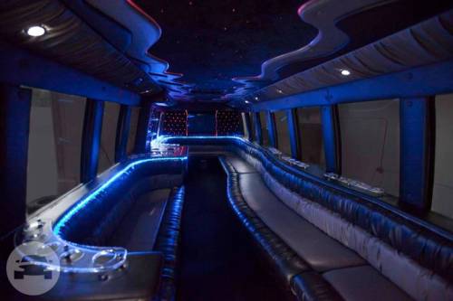 Coach 6 features two tone ostrich leather seating for twenty people! This bus includes a high-tech “Smart Touch” system. This gives passengers control over the temperature, the sound system, the plasma monitors, and the lighting. The bus also has a number of other amenities, such as a lazer light show, mirrored ceilings, and a great bar complete with a cup dispenser and a champagne bucket. Call us today to get a quote on this awesome new addition to the Dream Limos fleet. Features 20 Passengers 2 TVs iPod / CD / DVD / MP3 Large Bar Area LED Lighting Rockford Fosgate Sound