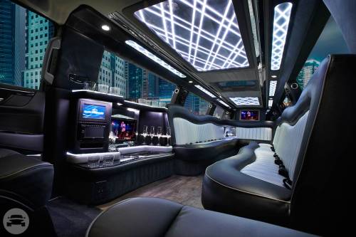 The Black Lincoln Towncar is a classic! The interior of this vehicle is illuminated by high-tech LED lights and features bench seating that fits up to six people. Two bar sections line the sides, offering easy access to beverages. Passengers will get to enjoy a sky view through our centrally located moon roof. This stretch town car service is great for corporate customers or any small group. It’s also possible to attach your music player to the sound system. Passengers are sure to enjoy the available luxuries in this vehicle. Features 6 Passengers Fiber Optics LED Lights Flat-screen TV in Divider iPod / CD / DVD / MP3