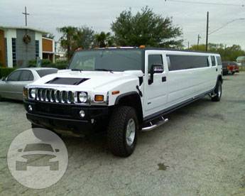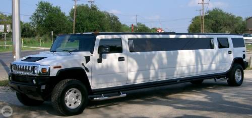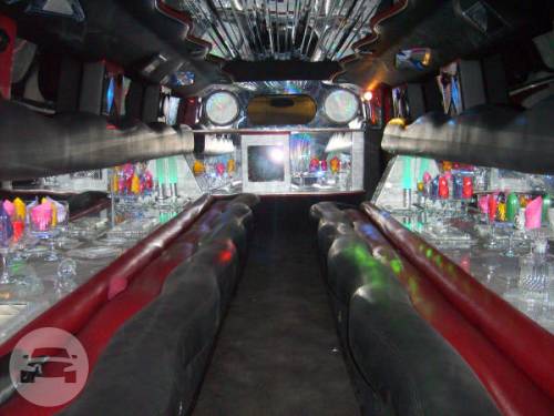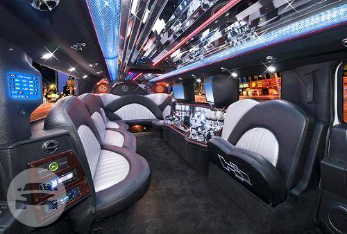 Surround sound system Flat screen TV Wet bar LED lighting system Black Hummer limousine White Hummer limousine