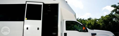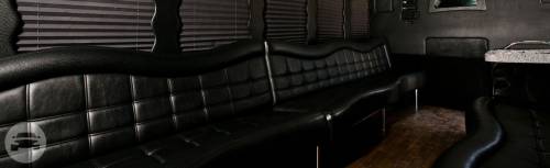 The 22 passenger Limo Party Bus represents finest in luxury group transportation. This nightclub on wheels offers state of the art technology and entertainment. Its sleek white exterior is simply a disguise for the unlimited fun held within the interior. Beautiful wood floors greet guests as they make themselves at home on wrap around black ostrich leather seating. Fiber optic lighting, flat screen plasma TVs, DVD players, CD and MP3 connections all channel through a surround sound audio system that will have your group partying in style.