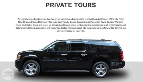 Capacity: 6 passengers 6 bags Our luxury executive black SUV's are perfect for corporate travel and group transportation, with seating accommodations for up to 6 passengers. Reserve for airport transfers to Louis Armstrong New Orleans International Airport or to New Orleans Lakefront Airport, private group tours of New Orleans, travel to the New Orleans cruise terminal, hourly travel charters, for point to point New Orleans city transfers, or custom created itineraries with help from the travel transportation team at Audubon Limousine. All SUV's feature impeccable, comfortable luxury interiors with black leather seating, business tint windows, and an excellent, smooth ride. Our top rated, highly reviewed SUV transportation service is perfect for affiliate partners, meeting planner VIP's, convention executives and VIP's, and those in search of luxury "on the go." Proudly servicing the Greater New Orleans Area and beyond, including Metairie, Kenner, Chalmette, the Westbank, the Northshore including Mandeville, Lacombe, Slidell, and Hammond, and all the way to Baton Rouge. Relax in comfort, while we take the wheel. Reserve easily and in real time now online. Our guest service team is on standby to help with the details for your next travel itinerary, and is well versed in multi day group travel, quick transfers, and all that is needed to get from point A to point B.