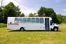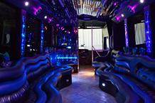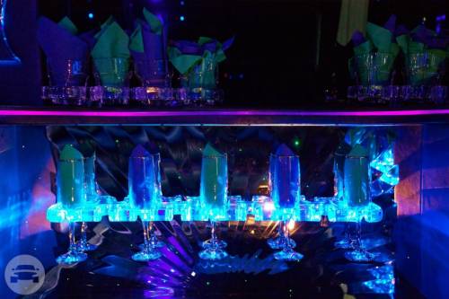 25 Passenger Seating • (2) Flat Screen TV • Premium Surround Sound System • CD / DVD Player With AM / FM Radio & Aux Port • Fiber Optic and Laser Lights • Mirrored Fiber Optic Ceiling • Large Bar Top & Ice Chest • Glasses with Decorative Napkins to Match your Occasion