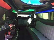 The One-of-a-Kind "PINK PANTHER" Pink H2 Hummerzine complete with Pink Panther theme song played through a custom horn amplifier. Vehicle Amenities: • Up to 20 Passenger Seating Capacity • LED Lit Color Changing Floor • Color Changing LED & Fiber Optic Lighting • CD / DVD Player With AM / FM Radio & Aux Port • (2) 4" & (1) 48" Flat Screen TV's (48" TV acts as privacy partition) • Spectacular Custom Interior & Built in Ice Chests Throughout • Glasses with Decorative Napkins to Match your Occasion