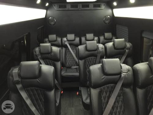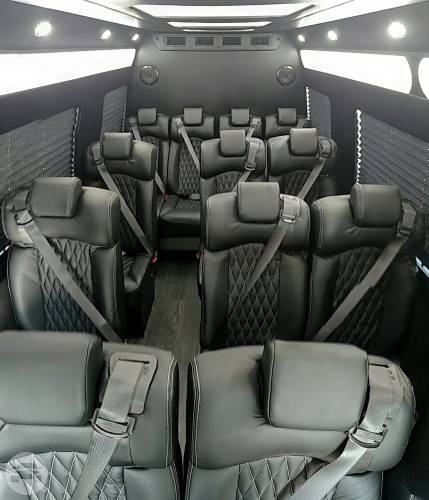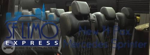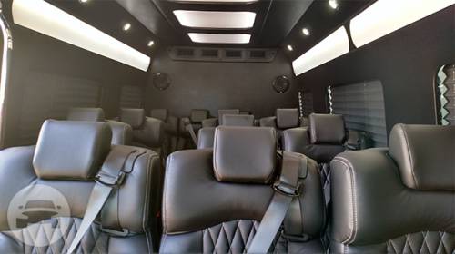 A LITTLE HISTORY The Sprinter is a vehicle built by Daimler AG of Stuttgart, Germany as a van, chassis cab, minibus, and pickup truck. In the past the Sprinter has been sold under the Mercedes-Benz, Dodge, Freightliner, and Volkswagen nameplates. In the United States it is built from complete knock down (CKD) kits by Freightliner. They are now primarily marketed by Mercedes-Benz. Rebadged and re-engined Sprinters are also sold by Volkswagen Commercial Vehicles as the Volkswagen LT and the Volkswagen Crafter. SERVICE OFFERED IN THIS VEHICLE Point to point service Airport transfers Dedicated chauffeur service Shuttle service Nightlife service 11, 14 & 17 passengers Various Luggage Capacity Black Cloth & Leather Interior Shuttle, Executive & Limo Style Seating On Board Wi-fi Large LCD Screen